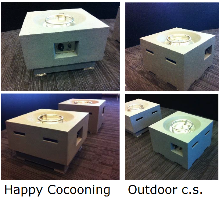 Modellenrecht. Inbreuk. Materiaal. Happy Cocooning heeft haar assortiment ‘Cocoon Tables’, composieten tuintafels met daarin een gasbrander. Daarvoor zijn gemeenschapsmodellen geregistreerd. Outdoor c.s. biedt een serie tafelgashaarden ‘Cosy Living Lounge’ aan. De als meervoudige aanvrage gedeponeerde modellen zijn geldig. De combinatie van opgesomde elementen leiden tot een model dat een andere algemene indruk maakt dan het overgelegde ‘Umfeld’. De modellen uit het vormgevingserfgoed verschillen aanzienlijk van de Cocoon Tables. Niet het materiaal wordt beschermd, maar slechts de uiterlijke vormgeving van het door zandstralen bewerkte materiaal dat de ‘beton-look’ creëert. De strakke, minimalistische vormgeving en het lijnenspel is ook bij de Cosy Living Table een in het oog springend element. De voorzieningenrechter verbiedt de Cosy Living Lounge en gebiedt een recall-actie.
